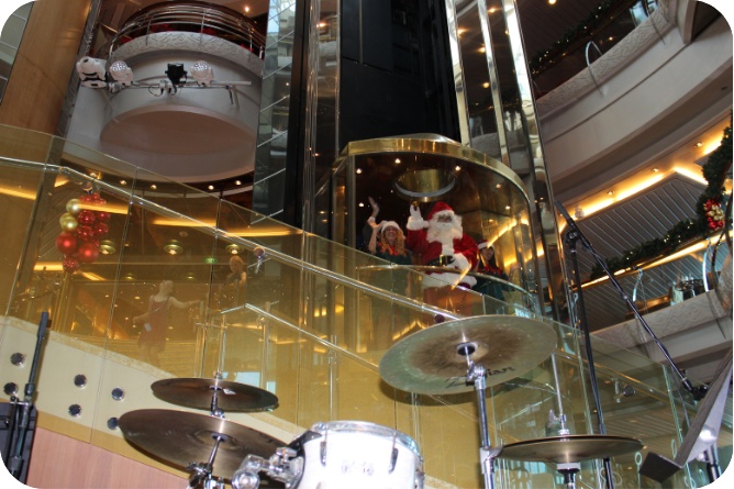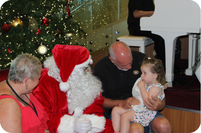 This memorable moment only seems like yesterday. Back in 2016, a couple of weeks before Christmas, we cruised to Vanuatu with Royal Caribbean on Legend of the Seas. Given the timing, Santa made a visit. No chimney arrival for the man in red this time! Instead, he (and his elf) had an upgraded entry via a glass elevator! Not a reindeer to be seen. The third photo is of our youngest using Nanny and Poppy as back up to let Santa know her Christmas wishes.
