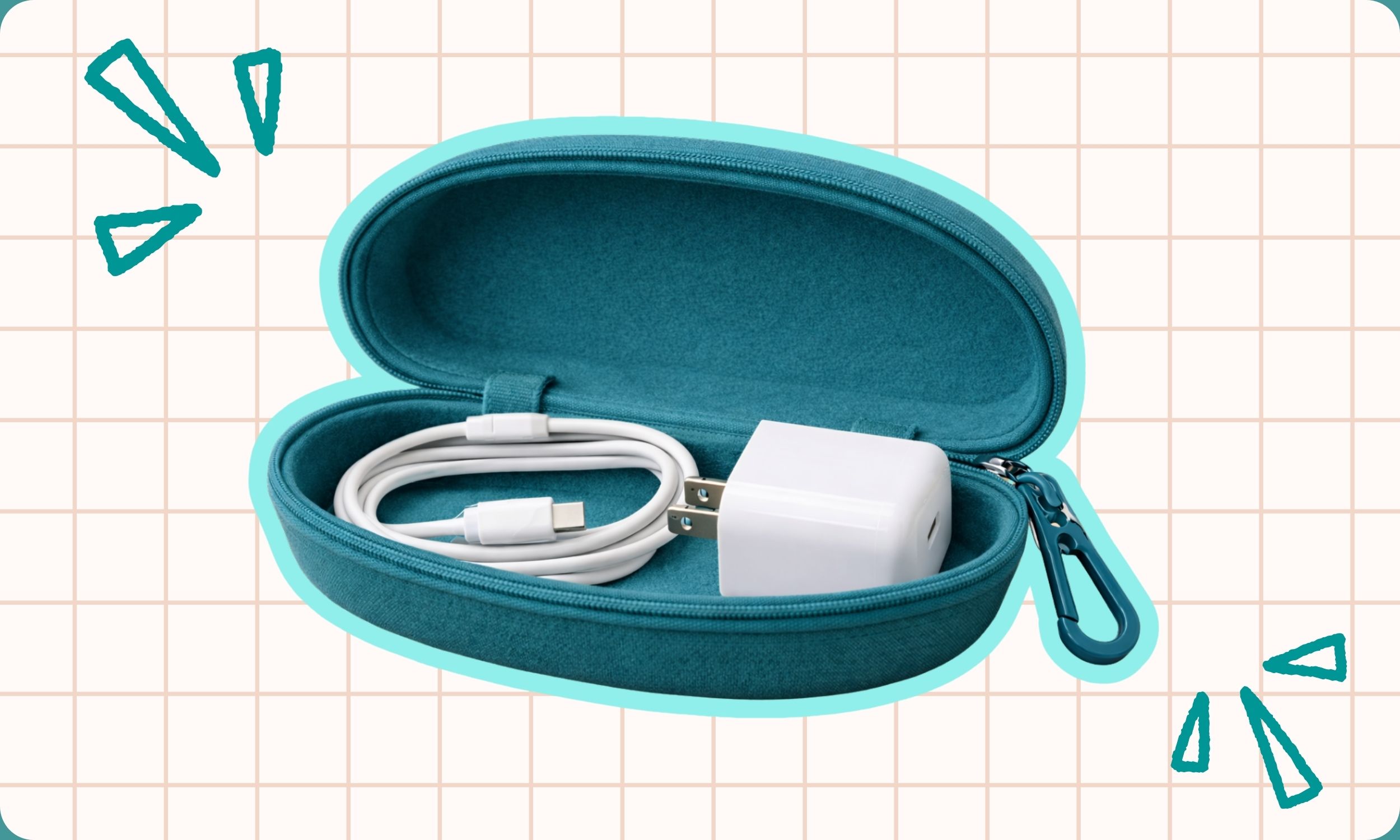 Using a sunglasses case keeps chargers, earbuds and cables tangle-free and easy to grab in transit.